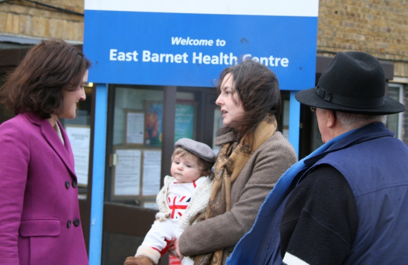 Theresa Villiers, Conservative Parliamentary candidate for Chipping Barnet, has been supporting the campaign to re-open East Barnet Health Centre (EBHC). It was closed for asbestos removal last spring and was expected to re-open after a few weeks. When the asbestos problem turned out to be more serious than expected, the closure dragged on.