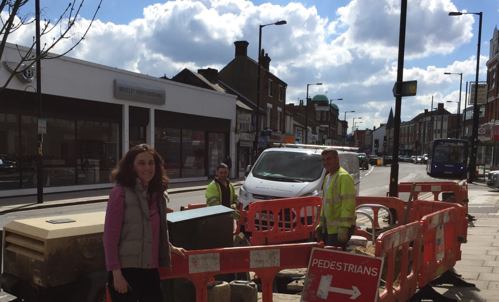 After the many months of campaigning for better broadband for Barnet, Theresa Villiers MP has welcomed the news that the first of the gaps in fast broadband provision in High Barnet have now been filled. On 18th May, Cabinet 52 in Hadley Parade on Barnet High Street was connected up to fibre broadband, becoming operational for all homes and businesses in the surrounding area who want to sign up for superfast services. This was one of the list of problem cabinets identified by the Barnet Society as urgently needing a connection to superfast fibre broadband.