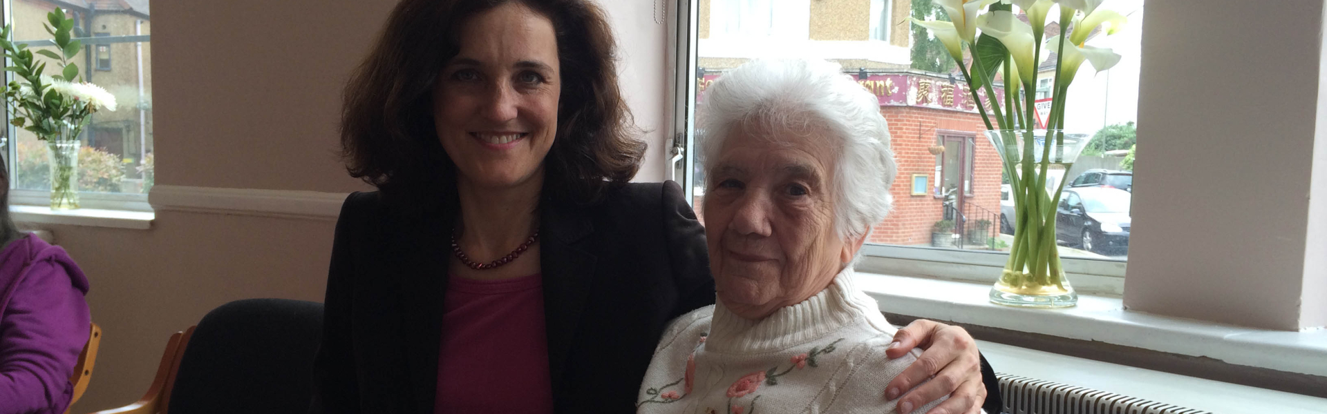 Theresa Villiers with Mathilda Hodges who is one of the volunteers who run the Building Friendship drop-in service at East Barnet Baptist Church.