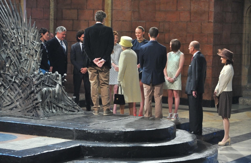 "Their visit to the film set of Game of Throwns as generated worldwide interest but the aspect of the tour which I enjoyed most of all was the speech Her Majesty made at Belfast City Hall. It was heartening to see Her Majesty given such a warm welcome from representatives of political parties from right across the spectrum. That was another historic first and is a reflection of the personal contribution Her Majesty has made to peace and reconciliation in Northern Ireland, not least because of her tremendously successful State Visit to the Republic of Ireland in 2011."