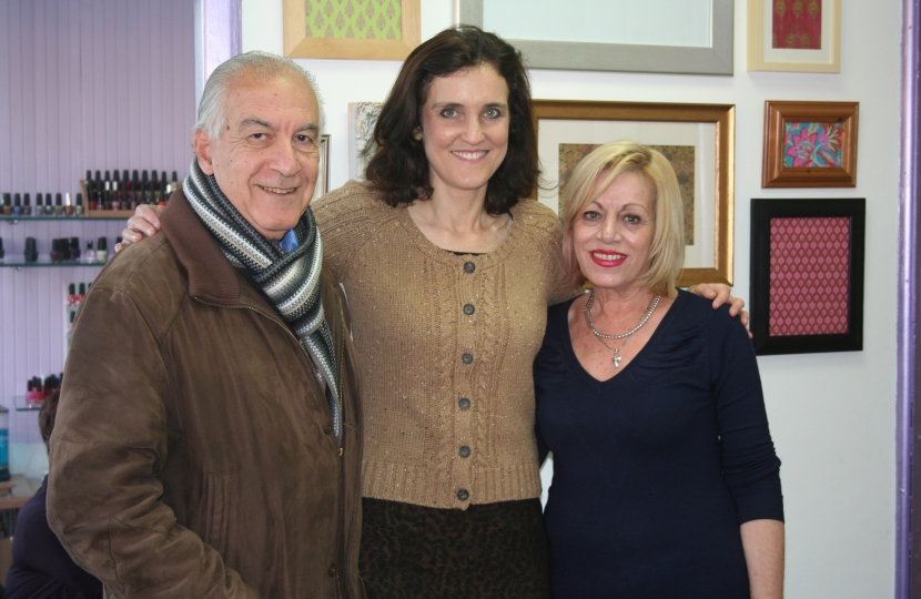Theresa Villiers MP visiting local traders from Hampden Square and High Barnet with Cllr Lisa Rutter, Andreas Tambourides and Andreas Papaevripides.