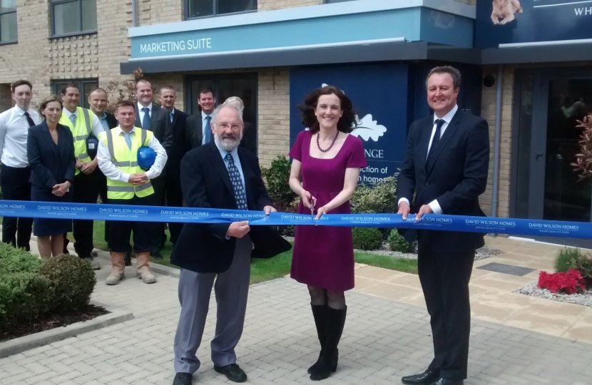 The ribbon was cut for new homes in Whetstone on Friday by Theresa Villiers, MP for Chipping Barnet. The new Oakwell Grange development is being built by David Wilson Homes, following on from engagement with the local community and elected representatives to amend the plans originally put forward for the site.